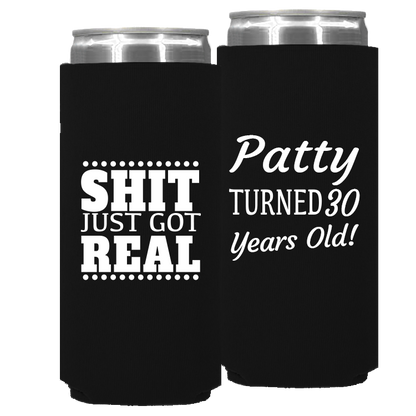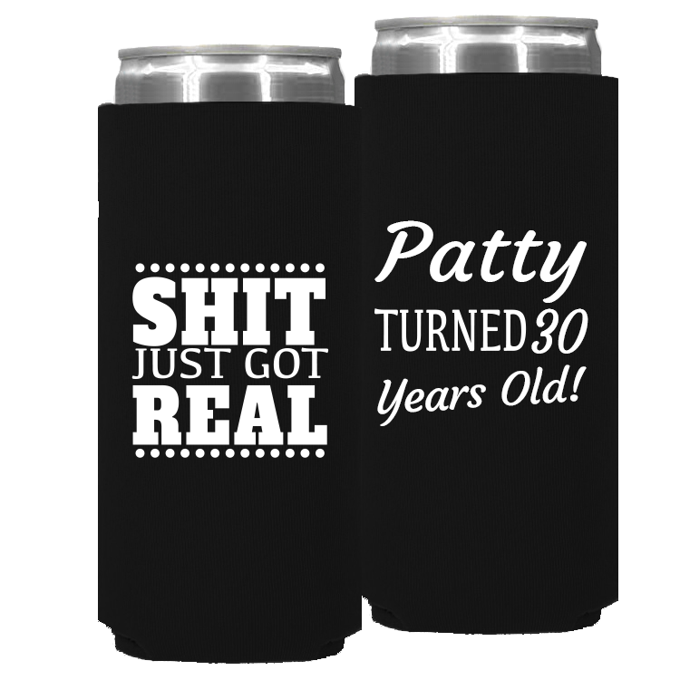 All those thin cans of wine, beer, energy drinks and seltzer deserve to be kept cold too. Our collapsible foam slim can koozees slip right over these thin-style cans and you can fit a whole lot of design on them. These koozees are popular sellers for all kinds of events from bachelorette parties to weddings. Available in a wide variety of colors.