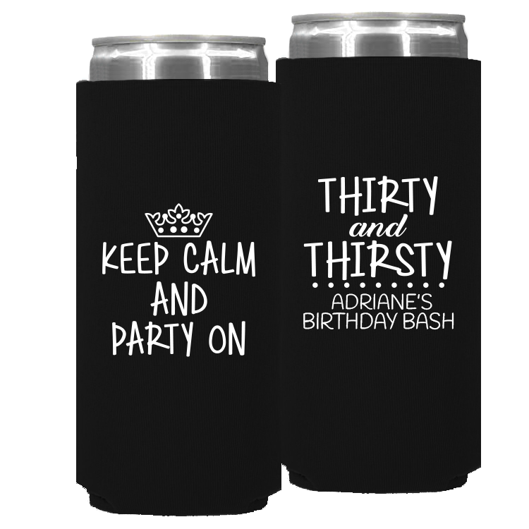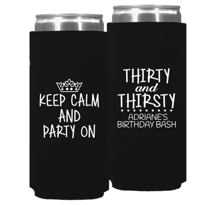 All those thin cans of wine, beer, energy drinks and seltzer deserve to be kept cold too. Our collapsible foam slim can koozees slip right over these thin-style cans and you can fit a whole lot of design on them. These koozees are popular sellers for all kinds of events from bachelorette parties to weddings. Available in a wide variety of colors.