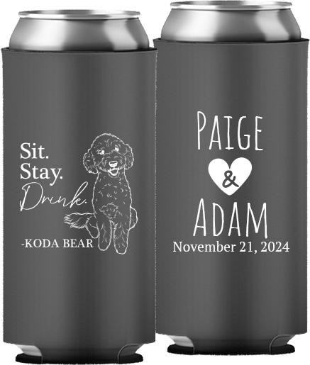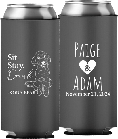 Pet Portrait 01 - Sit. Stay. Drink. - Neoprene Slim Can