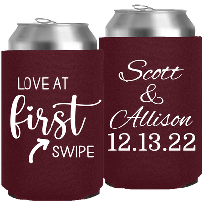 Give your special day an extra special touch. Made from the same material as wetsuits, our neoprene can koozees are a versatile top-seller. Pops right up to keep 12-ounce cans nice and cold, and collapses flat to make a special keepsake of your special day. Like all our koozees, it comes in a wide variety of colors.