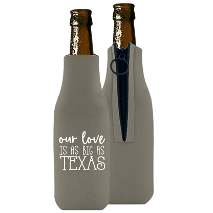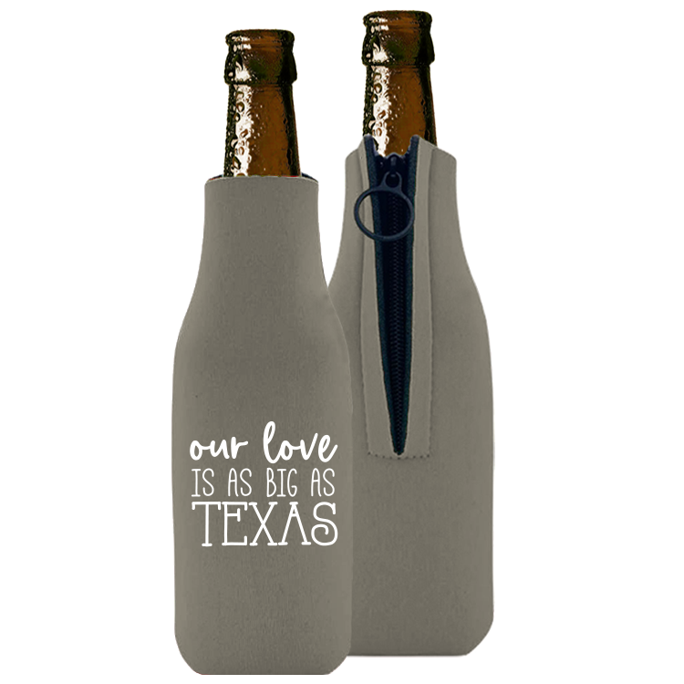 Bottles need to wear something nice at weddings, too. Made of the same material as wetsuits, our neoprene bottle coolers will keep everyone's beverages nice and cold, look great in your guests' hands, and provide a perfect keepsake for your special day.