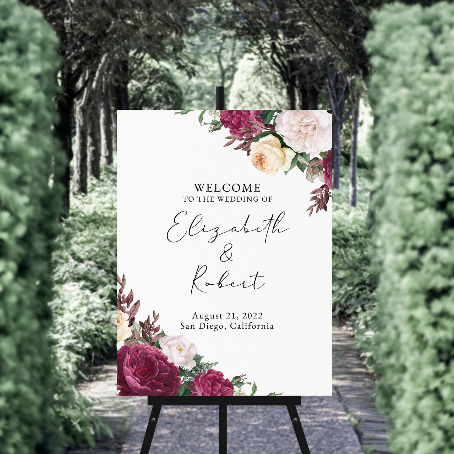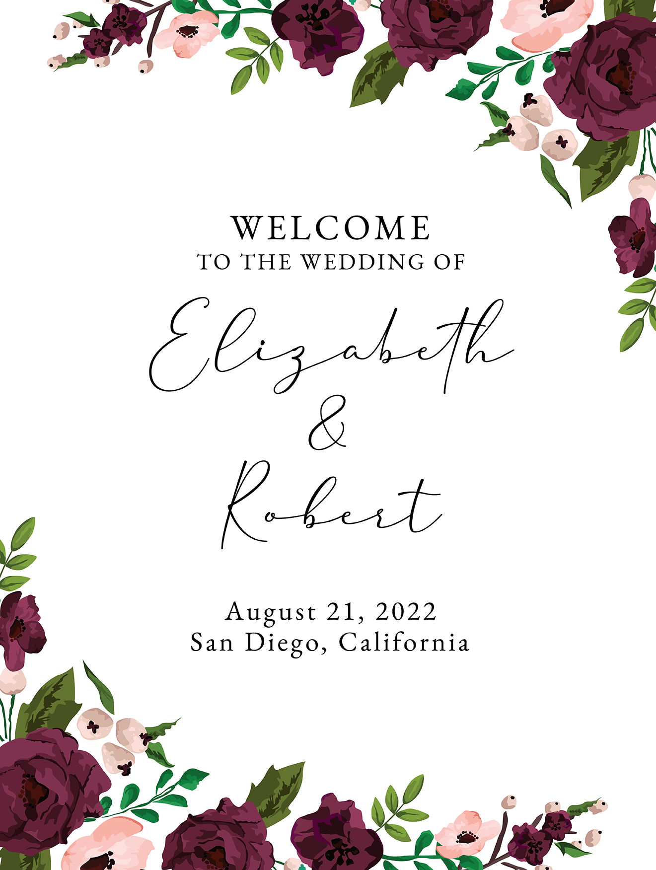 Wedding Welcome Sign - Dark Florals